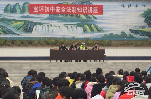 • 云阳网讯(记者 黄小娟)为加强全校师生的法制安全意识,近日,宝坪初级中学邀请宝坪派出所和交巡警凤鸣中队民警到学校开展知识讲座。