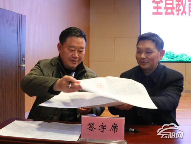 会上,县教委领导还与各学校签订了《2018年安全稳定、社会管理综合治理工作目标责任书》。