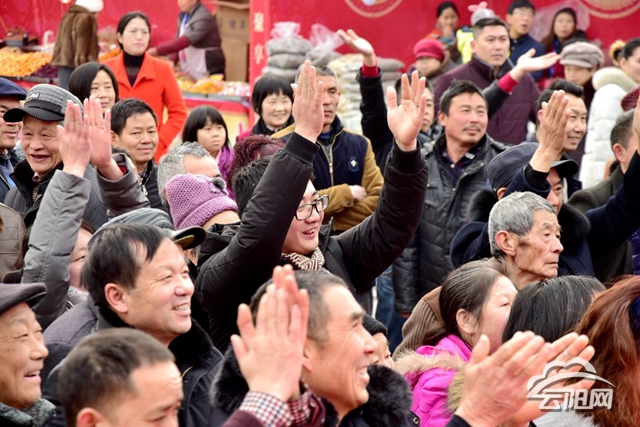 在抢答赢礼品环节中,围观的市民们积极互动,举手抢答。