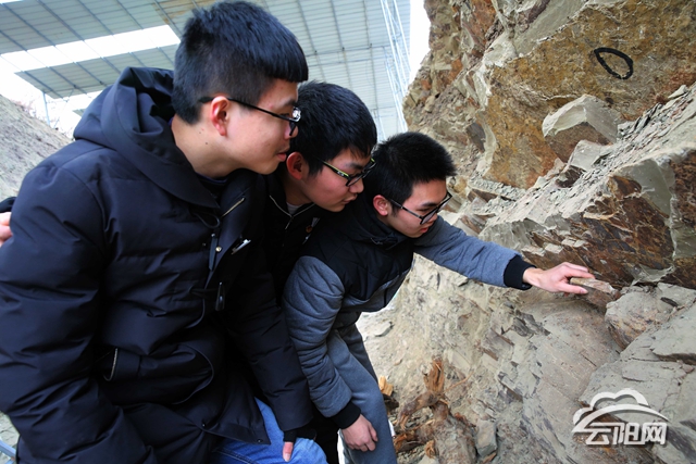 在临时化石存放室内,工作人员详细介绍了恐龙化石的发现和化石墙的发掘过程,以及专家学者对化石群的探秘情况。同学们来到发掘现场,了解了化石形成的原因,让课本上的知识得到了很好的印证。(刘兴敏 摄)