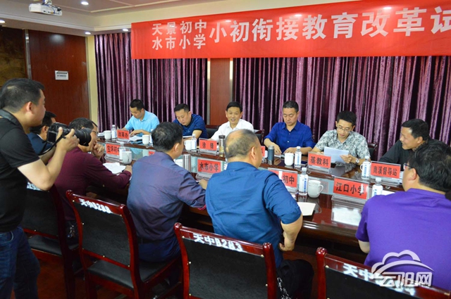 会上,与会人员讨论了天景初中、水市小学小初衔接的可行性。据了解,基于当前的形式,为了解决水市小学大班额的现象,天景初中和水市小学多次协商、反复论证,达成了一个共识,即从下学期开始把水市小学六年级的学生移到天景初中,由天景初中实行小初衔接教育改革试点。