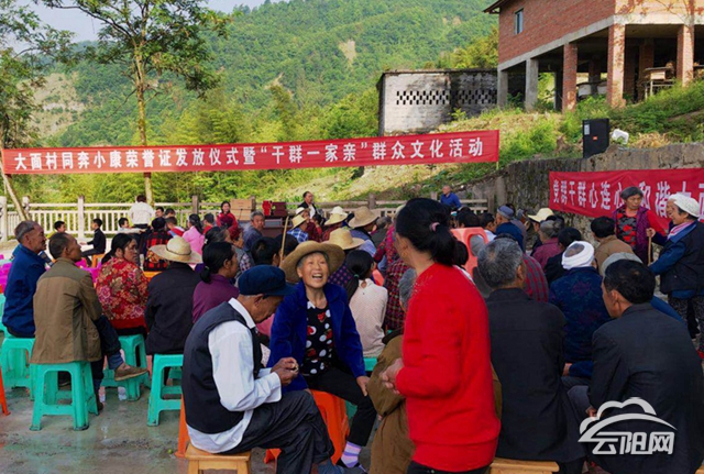 • 云阳网讯(记者 王彬彬)近日,江口镇大面村文化活动广场上一片欢声笑语,干部群众聚集在一起其乐融融。这是县教委、农商行等帮扶单位与江口镇在这里举行同奔小康荣誉证发放仪式暨“干群一家亲”群众文化活动的一个镜头。