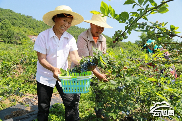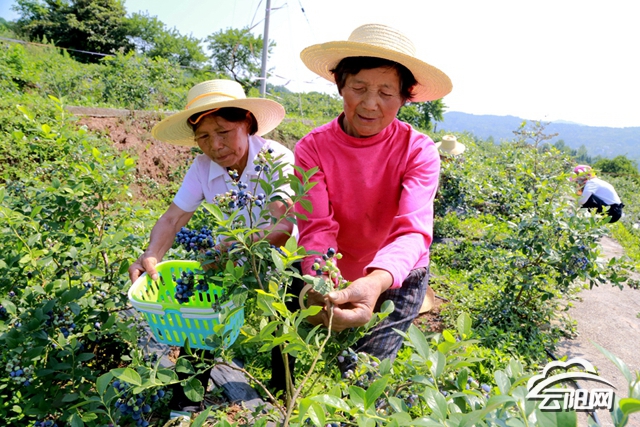 龙水村蓝莓种植基地的蓝莓是当地的一家农业公司于2015年引进种植,种有奥尼尔、粉蓝等9个品种。因当地的光热资源丰富,土壤特别适合蓝莓生长,2015年第一次试种便取得了成功。与其他蓝莓相比,基地蓝莓具有糖分高,风味足,酸度相对较小,果实颗粒较大等优势。今年,该公司栽种的60多亩蓝莓已经正式挂果,目前,有10多亩蓝莓已成熟,采摘季将持续到7月底。