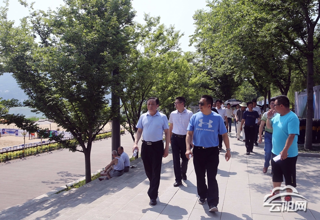 在环湖绿道阳光沙滩,丁笙洺认真查看了赛事场地、临时设施、办公场所,听取了后勤、交通、医疗、宣传、安保等部门负责人对场地情况、赛事准备情况。通过前一段时间的工作,场地及赛事准备取得了阶段性成果,目前,相关人员陆续到位,比赛场地安排基本就绪,赛事准备稳步推进。