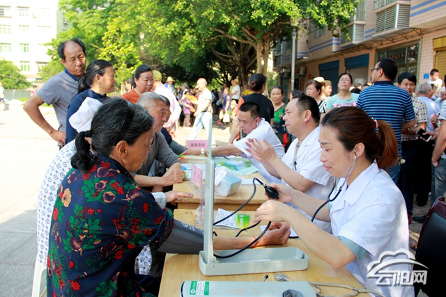 义诊活动中,志愿者热情地为群众诊断,发放消暑药品。“我早就听说有医疗志愿者来义诊,心里可美啦,正好让他们帮我测量血压。”正在排队领消暑药品的吴远珍激动地说。