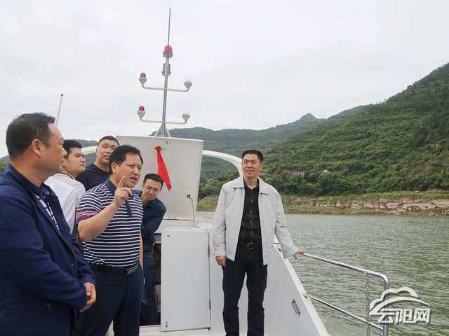 王光荣一行乘船到长江云阳段、磨刀溪新津至龙角段、龙角镇龙堰村载田沟处非法筑坝养鱼、龙角中学处弃置建筑垃圾现场,重点巡查消落区耕种、拦网养殖、排污口、固废、涉河建设等问题,详细了解相关部门、乡镇落实河长制工作推进情况。