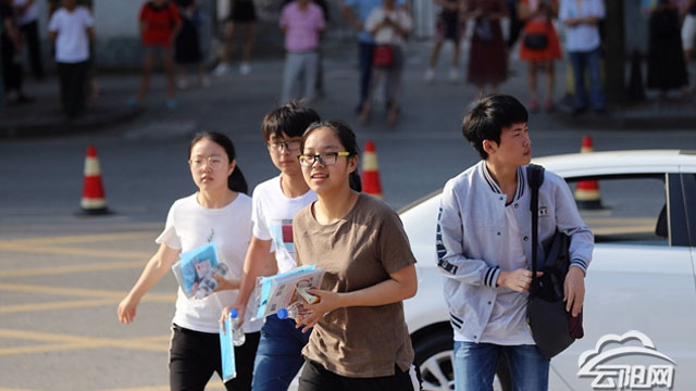 考场温馨一幕 学生考场内考试家长考场外“陪考”