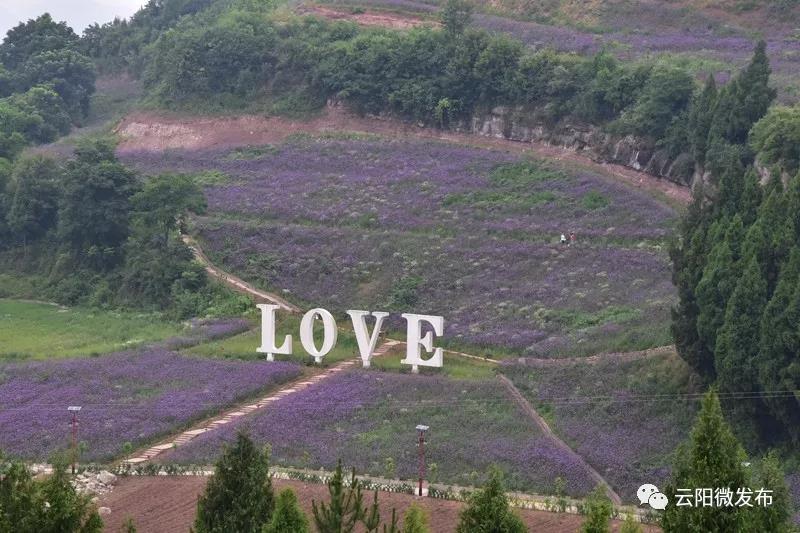 那一片片绿油油的马鞭草蒙上了一层紫色的纱巾,