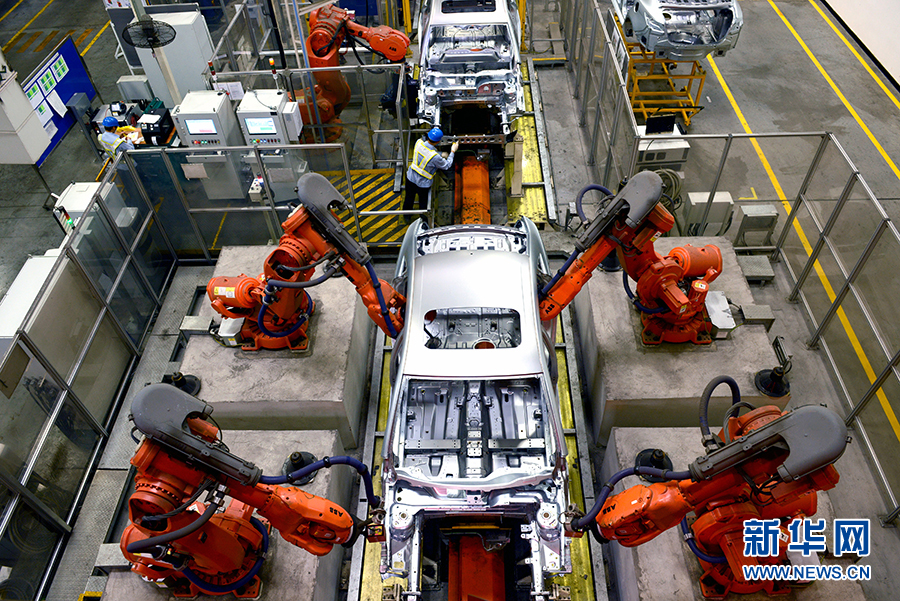 长安福特汽车生产线上的工业机器人。新华网发(钟桂林 摄)