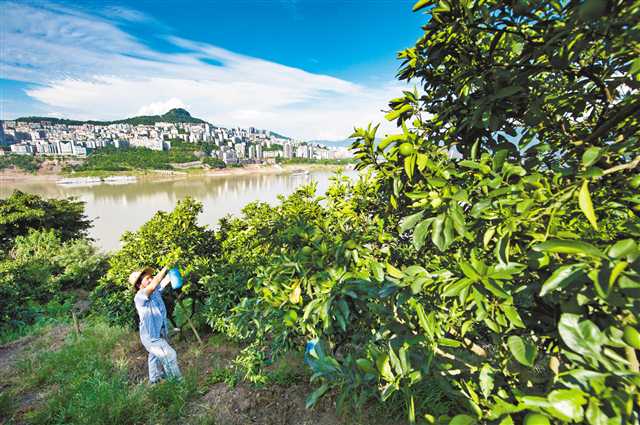 近日,云阳县盘龙街道活龙社区,农户在柑橘林劳作。活龙社区位于云阳县城正对面,属长江生态屏障示范段规划建设区,建设面积3000亩,栽植各类苗木35万株。其中位于175水位线100米以上的长江生态经济林带,栽植纽荷尔柑橘、葡萄、龙眼等果树,总面积达1500余亩,农民人均年收入增加2000多元,实现了岸增绿、人增收。