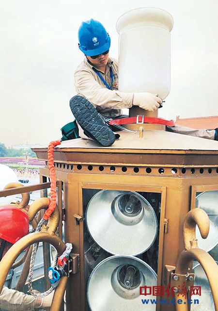 每年5月份到9月份,是北京最炎热的季节,也是华灯班最忙碌的时候。为了每年国庆节期间华灯能够以最好的状态向世人展示,这个北京最难熬的几个月华灯班要对253基华灯、6000多个灯球做全方位的清洗检修。同时,还要对华灯的光源、线路、镇流器、保险等核对、记录,为日常运行维护工作提供详实依据。