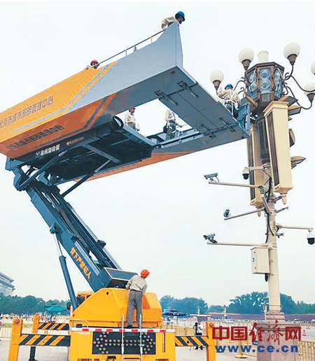 华灯车在检修和清洗华灯。经济日报-中国经济网记者 常 理摄