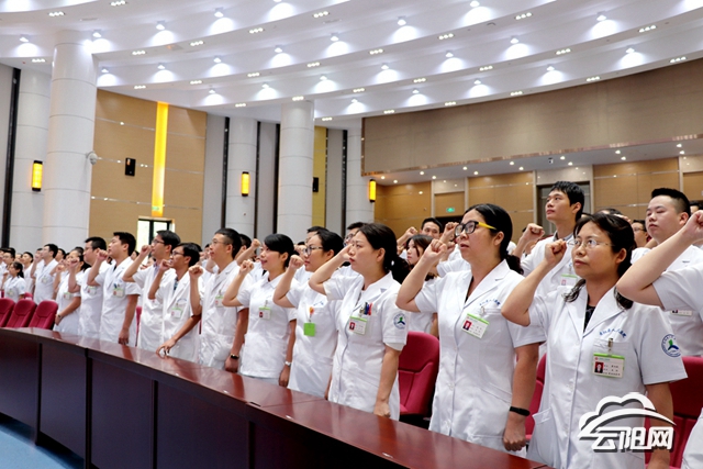 会议在观看新院宣传片中拉开序幕,由医务科代表带领与会医师宣读“中国医师宣言”。