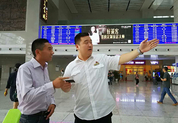 “因为身材魁梧,他们都喊我胖站长。”提及汗水打湿的衣服,赵伟杰打趣说是容易出汗造成的,但陡增的客流压力下,候车厅、站台、检票口前前后后到处跑,汗水打湿衣服也正常。赵伟杰还有一个特点,那就是繁忙的工作中,走到哪里都是笑呵呵的,他说,这样有助于服务旅客,尤其是情绪激动的旅客。