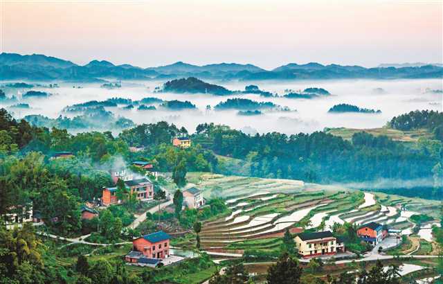 近年来,南川区强力推进农村环境综合整治工作,大力实施“改路、改厕、改水、治污、增绿”五大工程,农村环境越来越好。图为美如山水画卷般的兴隆镇永福村李家湾。 通讯员 夏于洪 摄