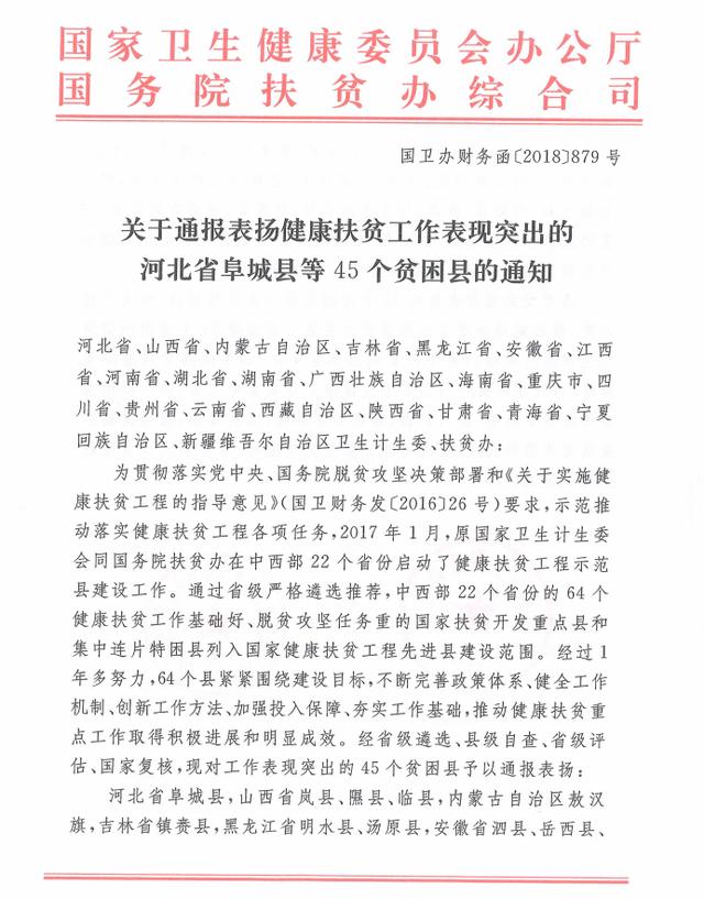 云阳网讯(记者 王彬彬)近日,国家卫生健康委员会、国务院扶贫办通报表扬了健康扶贫工作突出的45个贫困县,重庆市云阳县、彭水县名列其中。