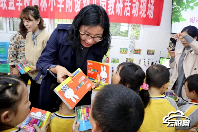 活动在捐赠仪式中拉开了的序幕,杏家湾幼儿园向桐林小学附设幼儿园捐赠了水彩笔、油画棒、橡皮泥等学习用品。孩子们身着新园服,开开心心地接过老师们送给他们的手工及绘画材料,一个个兴奋不已,脸上露出了幸福的笑容。杏家湾幼儿园的教师深入班级组织音乐教学活动,适宜的教学内容、生动形象的图谱教学法、情景化的组织形式,引领着孩子们主动学习,也感染着在场的每一位听课教师。随后,举行了研讨活动,组织与会教师进行了集体评课,大家对三个教学活动的亮点与不足进行了深入评析,并就“幼儿园音乐教学活动的设计与组织”做了专题讲座。