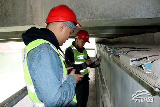 记者在检测现场看到,桥检车的摆臂已移动至桥体下方,工作人员正在仔细对桥面与桥墩的接触部分进行检测,查看接触面是否存在位移、橡胶垫是否存在变形等情况,并通过拍照存档,记录检测结果。“正在检测的引桥是主体检测的最后一段。”现场负责人刘波说:“下一步将用高空作业车对主塔和斜拉索的锚头进行检测,预计本周内可以完成对云阳长江大桥的例行桥梁检测。”