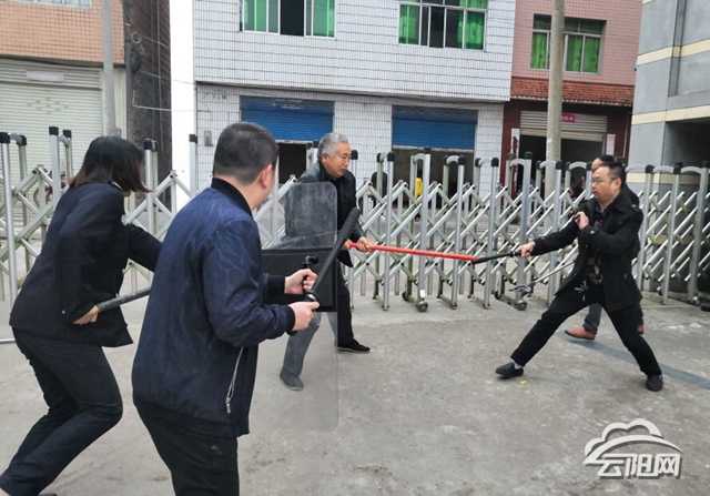• 云阳网讯(记者 李充 通讯员 朱玲)10月30日8时30分左右,凤桥小学师生正在专心致志上课,突然,一名手持器械的歹徒来到学校大门,保安立即上前阻止,劝其放下器械。歹徒不听劝告,挥舞凶器欲强行闯入校内。这时,学校迅速启动反恐防暴安全预案,刺耳的警报声随之响起……