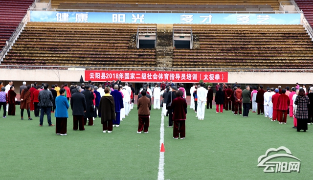 云阳网讯(实习生 刘浮生)为进一步推动全民健身活动开展,推广普及太极拳,近日,县文化委、县老体协组开展的2018年国家二级社会体育指导员培训(太极拳)在体育场开班,来自全县180余名太极拳爱好者参加培训。