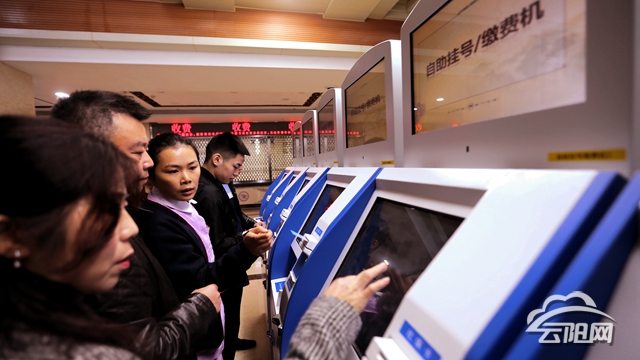 11月14日,在云阳县中医院门诊大楼大厅,一些市民通过导医指导,在“银医自助挂号缴费机”前,有条不紊地挂号、取号,选择就诊专家或科室。