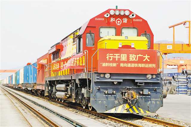 2017年9月25日,“渝黔桂新”铁海联运班列常态化运行首趟班列在重庆铁路口岸首发。该线路从重庆铁路口岸出发,通过铁路至广西钦州港,再海运至新加坡等东盟各港口,进而连通国际海运网络。