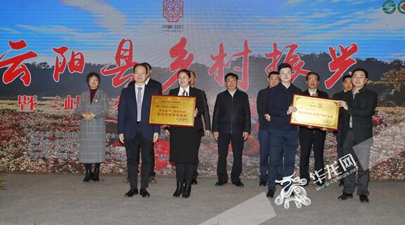 厦门航空等合作企业在研讨会上向三峡阳菊授牌。 首席记者 赵铁琥 摄