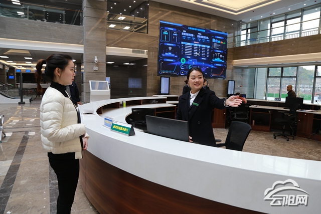 云阳网讯(记者 王彬彬)“这位女士,您办业务请往左侧走,办理窗口排在4楼。”11月26日,记者来到位于北部新区云商大厦的行政服务中心,大厅前台工作人员陈枝汕正在为群众提供咨询服务。