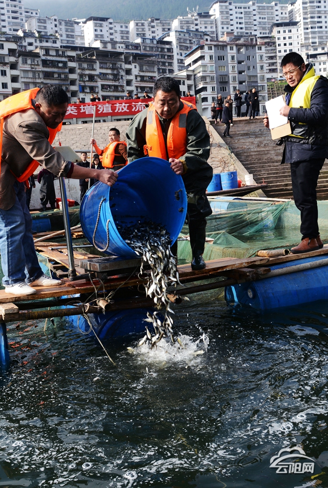 云阳网讯(通讯员 饶国君)11月26日,云阳县在南溪古镇码头前方水域举行增殖放流活动,用长达6个小时的时间,将82万尾鱼苗陆续投放汤溪河畔的三峡平湖,以期促进鱼类繁殖,涵养库区生态。副县长刘新民出席放流启动仪式。