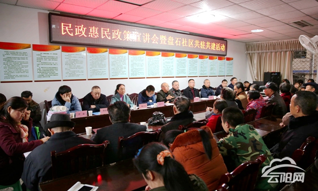 云阳网讯(记者 杨梅娜 通讯员 谢蜀云)11月27日,盘龙街道盘石社区联合县民政局等城市基层党建共筑共建单位和盘龙派出所开展民政惠民政策宣讲暨社区共筑共建活动。