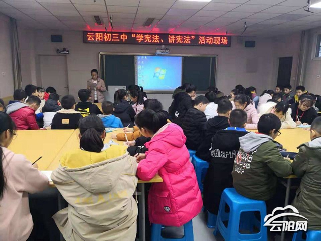 云阳网讯(记者 杨梅娜 通讯员 张酉权)12月4日,初三中全校各班分班举行了国家宪法日暨宪法宣传周主题教育班会活动。
