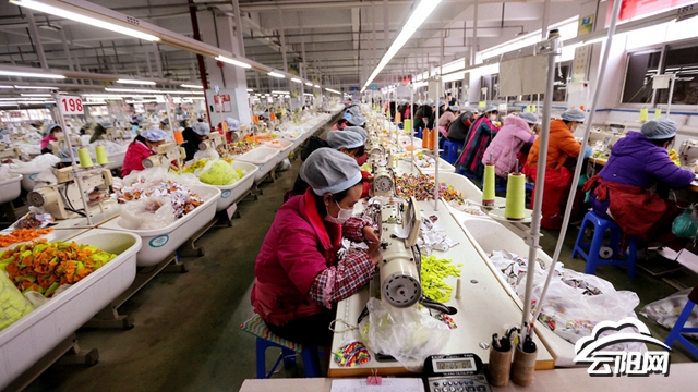 12月7日,在县工业园区雄业玩具制衣有限公司生产房里,工人们正在加紧生产。该公司是一家招商引资、劳动密集型的外贸出口企业,也是一家集研发、生产、检测、物流为一体的加工企业,主要生产各类儿童玩具、手套、包箱、针织服装、户外用品等。
