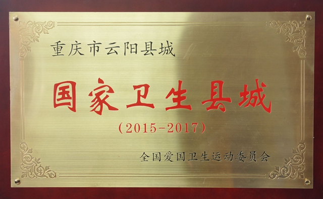 云阳县被全国爱国卫生运动委员会评为2015-2017年度国家卫生县城