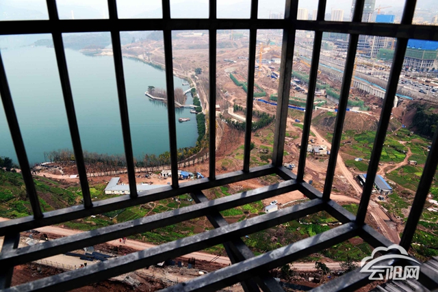 这是从云阳北部新区“北城天骄”居民楼上拍摄的“环湖绿道”建设情况。当下,三峡水库正维持高水位运行,库区沿线水漫护堤、轻舟如歌,迎来一年一度天更蓝、水更清、气更新的时节。
