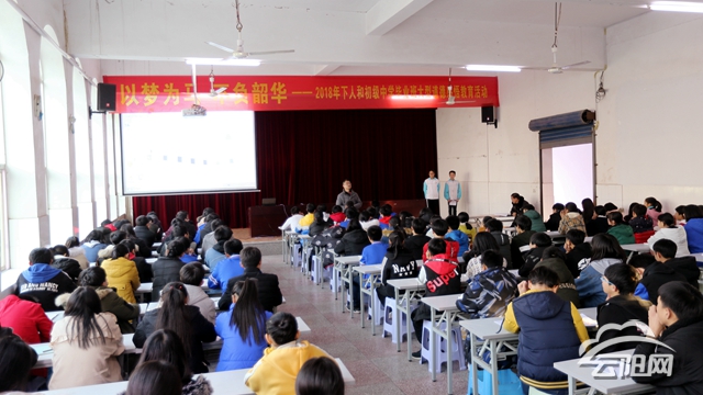 云阳网讯(记者 李充 通讯员 郑章彦)12月20日,人和中学开展以“梦想为马、不负韶华”为主题的大型道德感悟教育活动,助力全校近300名即将毕业的初三孩子在成长路上触摸彩虹,释放激情,拥抱人生。