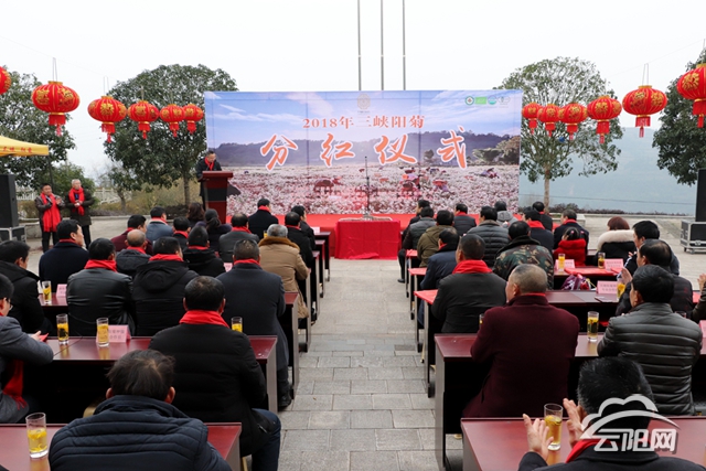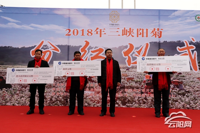仪式上,对2018年三峡阳菊种植情况进行了总结,对表现突出的优秀村集体经济组织和种植户进行表彰和分红。分红涉及16个乡镇(街道)28个村(社区),分红金额共计75万余元。