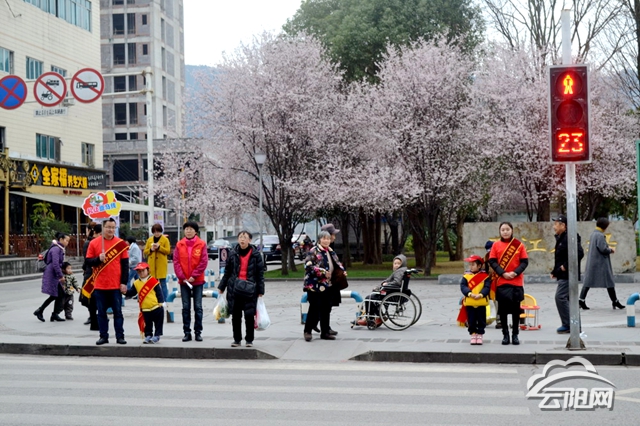 上午9时,实验幼儿园教师、家长和孩子们走进社区,开展交通文明劝导活动,向市民发放文明出行倡议书,劝导市民礼让斑马线、使用文明用语等,倡导市民养成良好的文明习惯。