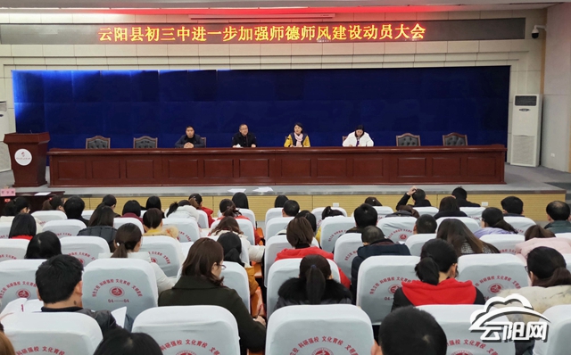 云阳网讯(记者 杨梅娜 通讯员 张酉权)近日,初三中组织召开“进一步加强师德师风建设”动员大会,认真学习《云阳县教工委、云阳县教育委员会关于进一步加强师德师风建设的意见》文件精神。