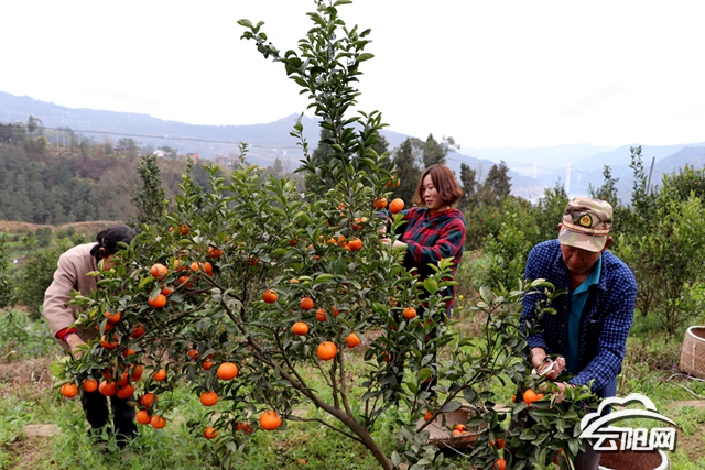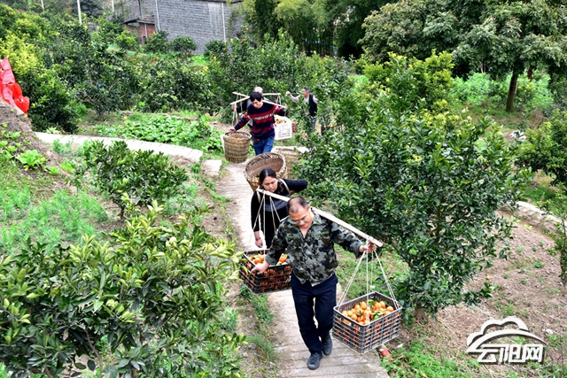 • 3月15日,在黄石镇老屋村,村民们在采摘运输柑橘。该村2012年成立橘发果树种植股份合作社,从事果树种植、产品收购、销售,以及农药、肥料代购代销等。合作社现发展社员354户,其中贫困户63户,建有柑橘示范园1735亩。柑橘示范园自2015年投产后,每年为每户村民创收5000元以上。(段斯斯 邓庭庭 摄)