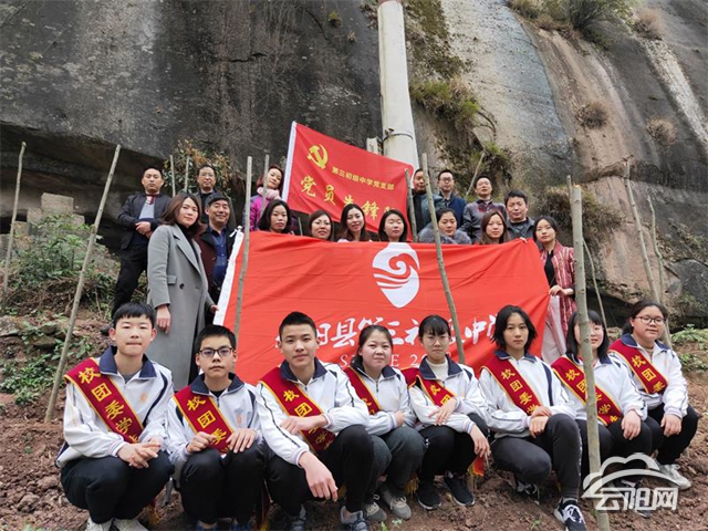 云阳网讯(记者 杨梅娜 通讯员 张酉权)近日,初三中组织党员教师和学生志愿者,前往紫金公园参加“我为祖国植10棵树”全民义务植树活动。