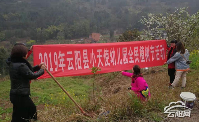 小天使幼儿园在3月12日带上我园的员工,走向森林,走向土地,为祖国种上10棵树。植树造林,是每个人民的义务,植树节,爱护树木,从你我做起。带上铁铲,提上水桶,你种我倒,为土壤添上一抹绿。