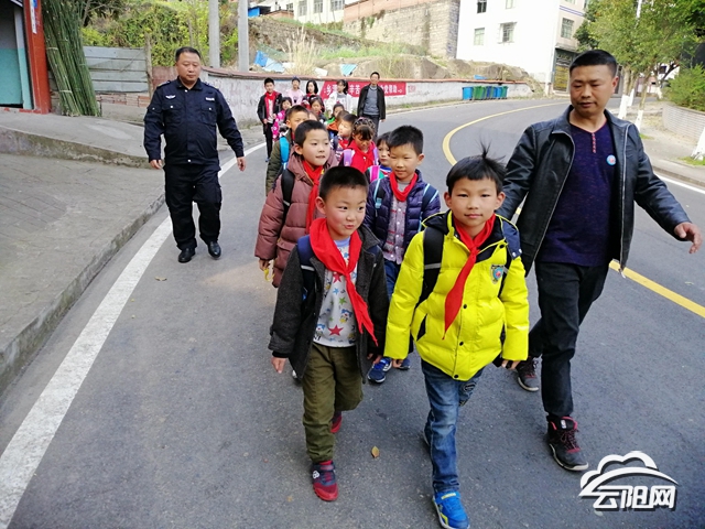 云阳网讯(通讯员 刘禹清)3月19日,渠马小学放晚学铃声一响,一群学生在“护学岗”护送下,走出校门整队集中回家。