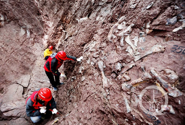 2014年夏,云阳县清水乡17岁的少年周政来普安乡老君村学开挖掘机。在工地对面的司马坡,他无意间扒开草丛,发现了不少形状跟猪筒骨几乎一样的奇怪“石头”,一连好些天,周政看着石头发呆,不禁想起电影《侏罗纪公园》——“啊?会不会是上亿年前的恐龙骨骼?”