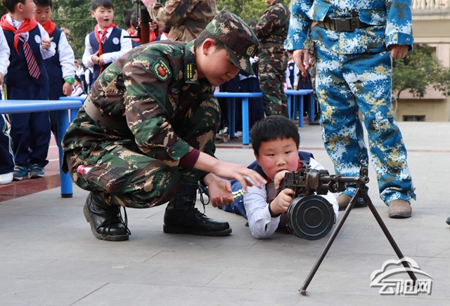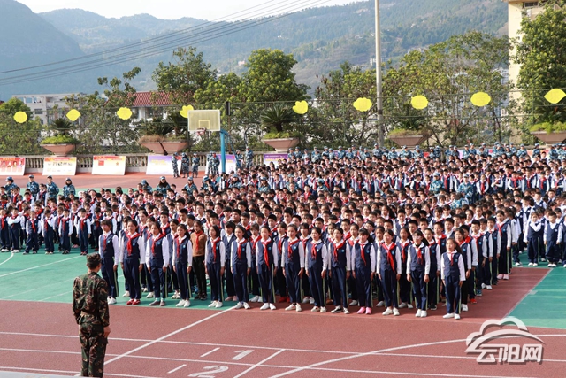 云阳网讯(记者 何竞嘉)3月25日,我县海军希望小学(云阳县双江小学)开展国防教育系列活动演练。全校学生经过一周的军事训练,以最昂扬的斗志和最饱满的精神向学校和教官交出完美的答卷。县委常委、县人武部政委肖霄检阅了学生军训成果。