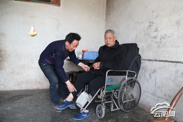 “爸爸,慢慢抬起脚,我给你穿鞋子……”近日,记者来到新津乡作坊村八组王碧涛家采访,他正在给父亲穿鞋。见到记者前去采访,王碧涛连忙说:“请坐!”今年50岁的王碧涛照顾父亲已有6年时间了。