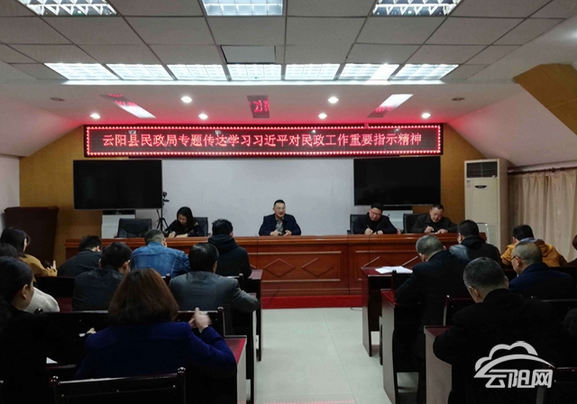 • 云阳网讯(实习生 郑红均 通讯员 李林)4月3日,云阳县民政局召开全体干部职工会议,传达学习习近平对民政工作重要指示精神,研究安排学习贯彻工作。