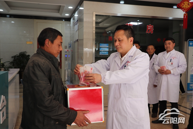 4月6日,记者来到云阳县华山医院看到,医院大厅正在举行一场特殊的募捐活动,该院发动医护人员捐款,救助因左股骨头缺血性坏死入院的71岁老人冉洪兴。