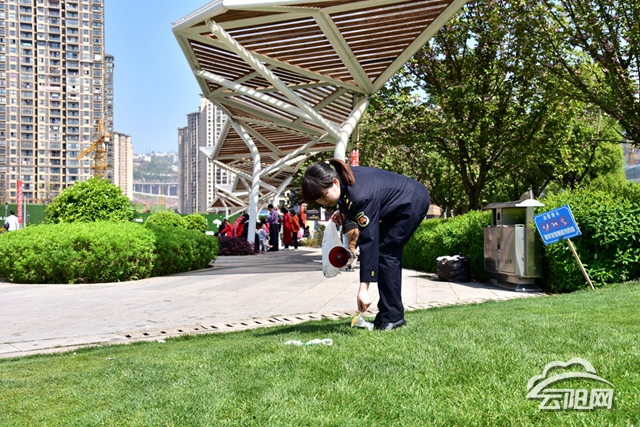云阳网讯(记者 段斯斯)时下正是月光草坪最美的时候,随着游园市民的增多,城市管理协管员王艳黎也迎来了最忙碌的时候,她不仅要走过草坪的每一条小路,还要查看草坪每一处,看到市民有不文明行为时,还得上前耐心劝说。