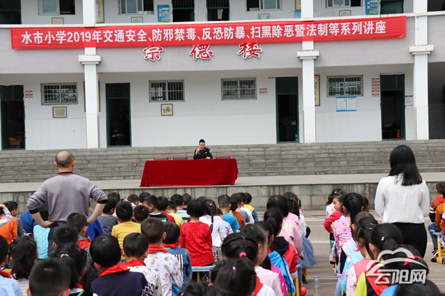 云阳网讯(记者 杨梅娜 通讯员 朱伟)为提高师生的法制安全意识,构建平安和谐校园,4月9日,水市小学邀请南溪派出所工作人员到学校开展法制宣传进校园活动,全校2500余名师生在操场聆听了专题讲座。