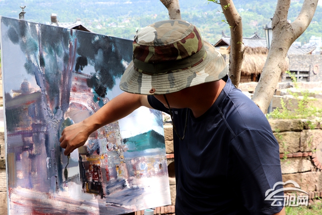 授牌仪式后,来自写生中国三峡分部和云阳美术家协会的40多位画家走进石来运转公园,找好角度,展开画具,调和颜色,两支画笔,一把刮刀,尽显大家风范,一勾一画间,石来运转景色慢慢地在纸上呈现出来。有的是水彩画、国画、有的是钢笔画,他们都专注的画着,时不时的抬头看一眼,偶尔会停下笔,认真的观察取景点,不放过任何一个小细节。